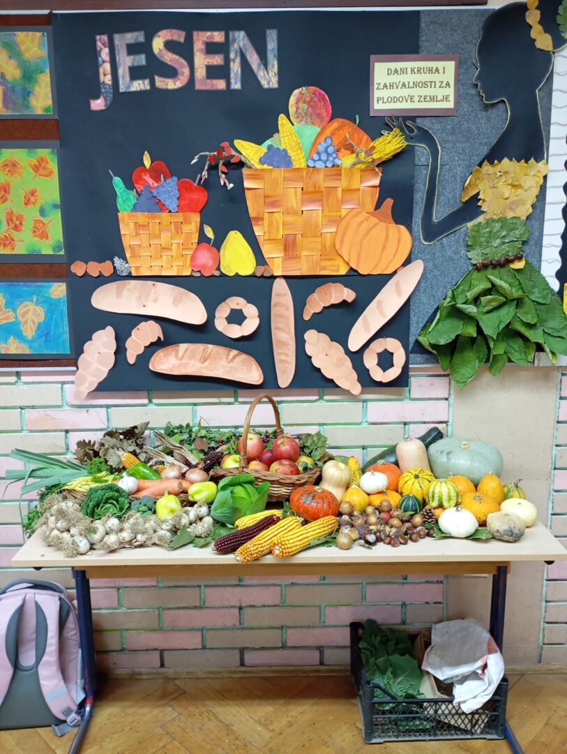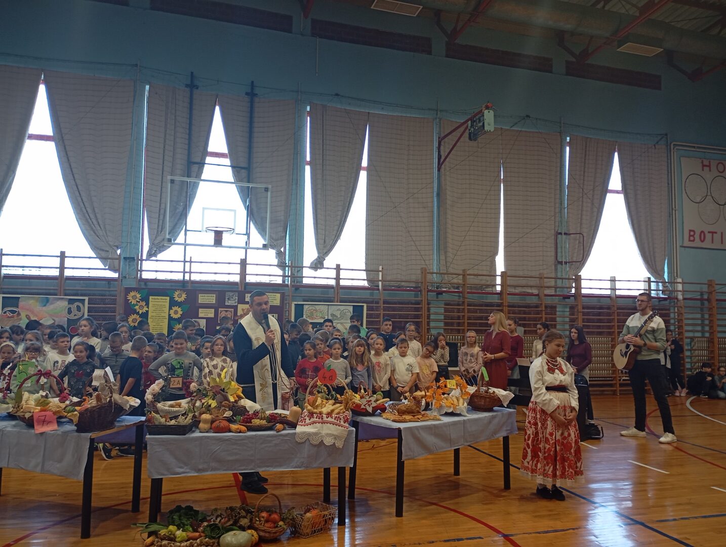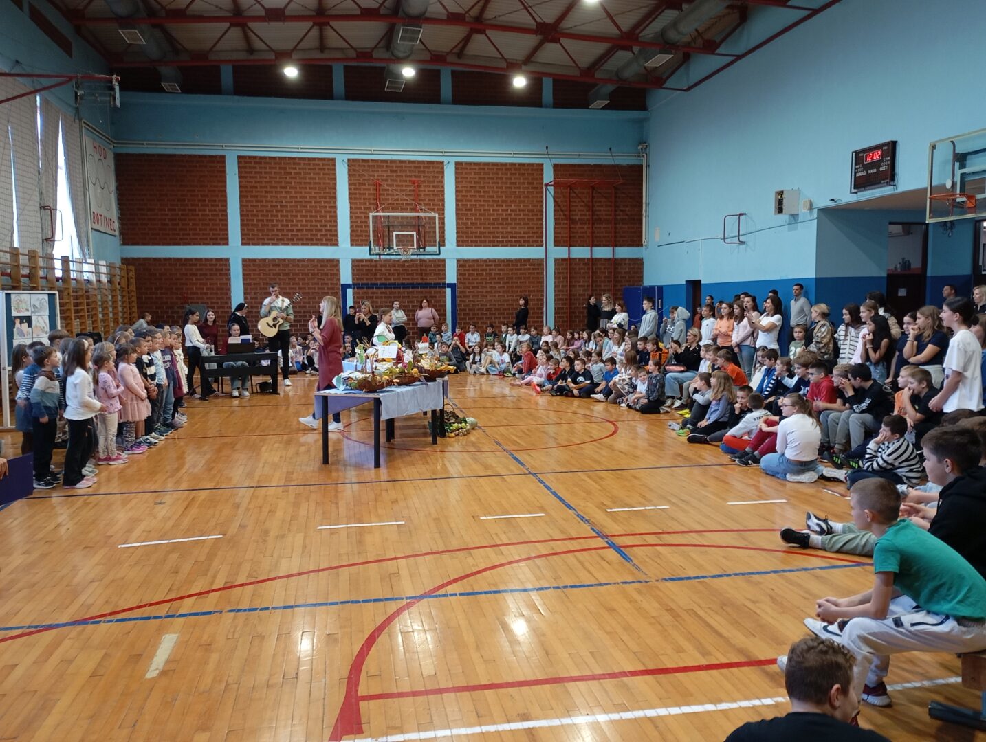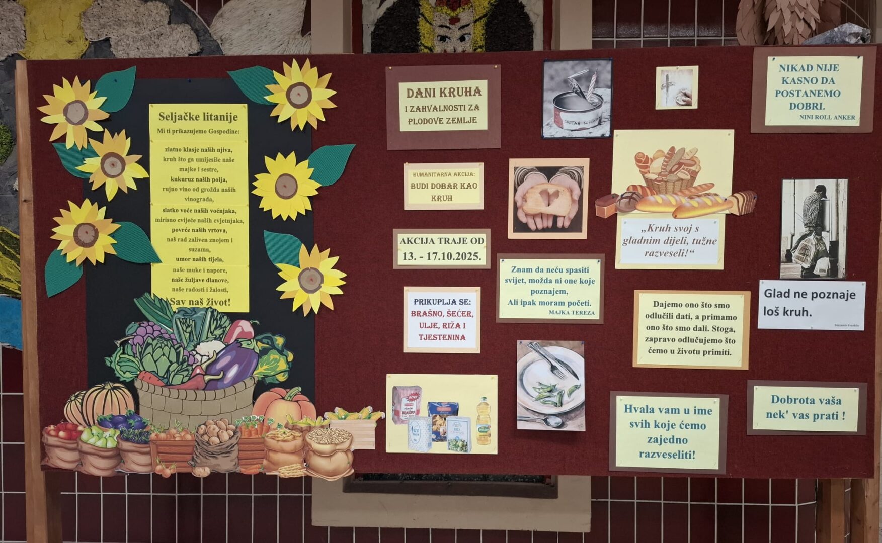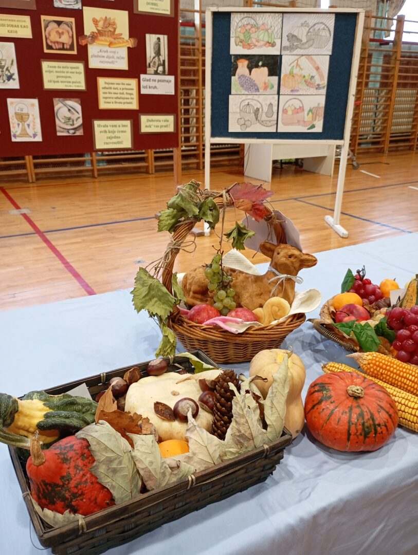 U petak, 17. listopada, svečano smo obilježili Dan kruha i zahvalnosti za plodove zemlje. Učenici su u školskoj dvorani kratkom priredbom uz pjesmu i recitacije zahvalili Bogu na svim plodovima i darovima. U programu su sudjelovali učenici 2. 3. i 4. razreda s pjesmom Kako da ti zahvalim. Iva Bobić i Korina Žulj zajedno su pjevale pjesmu Srce predajem ti. Učenici 1.a i 1.b nastupili su s pjesmom Da mi je biti sunce, a 1.c Ide jesen. Za glazbenu pratnju bili su zaduženi Petra Bilinovac na klavijaturi te gost i autor pjesme Kako da ti zahvalim Robert Kukić na gitari. Pjesmu Malo sjeme recitirali su učenici 1.a razreda. Priredbu su vodile učenice članice Biblijske grupe. Svečani program je blagoslovom i molitvom zaključio naš župnik vlč. Krešimir Babić. Nakon priredbe učenici su nastavili zajedničko slavlje u razredima blagovanjem krušnih proizvoda iz svojih razrednih košarica.