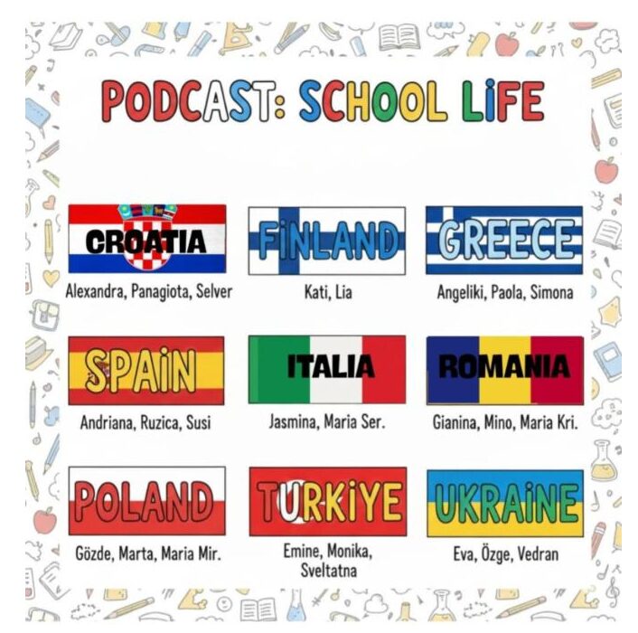 Snimili smo naš prvi podcast na temu školski život. Radili smo u timovima i svaki tim trebao je proučiti i snimiti priču o nekoj zemlji. Mi smo snimali za Španjolsku i Ukrajinu.
